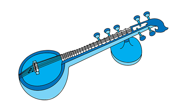 The Veena is an Indian plucked stringed musical instrument with origin in ancient India, Veena also spelled as Vina or Bina evolved in many variations in instrumental families as harpes, lutes and zithers with many evolutions and modifications it is mainly used in Carnatic music as Saraswati Veena & Chitra Veena or Gottuvadyam / Mahanataka Veena and in Hindustani classical music as Rudra Veena, Vichitra Veena and Mohan Veena. About 3 to 4 feet long, the body and stem of Veena is made of wood usually jack wood and has 19 - 24 frets in different type and genre of Veena instruments and usually has seven strings, four of these are the main strings and the other three Veena strings that are used as the strings for rhythmic accompaniment.